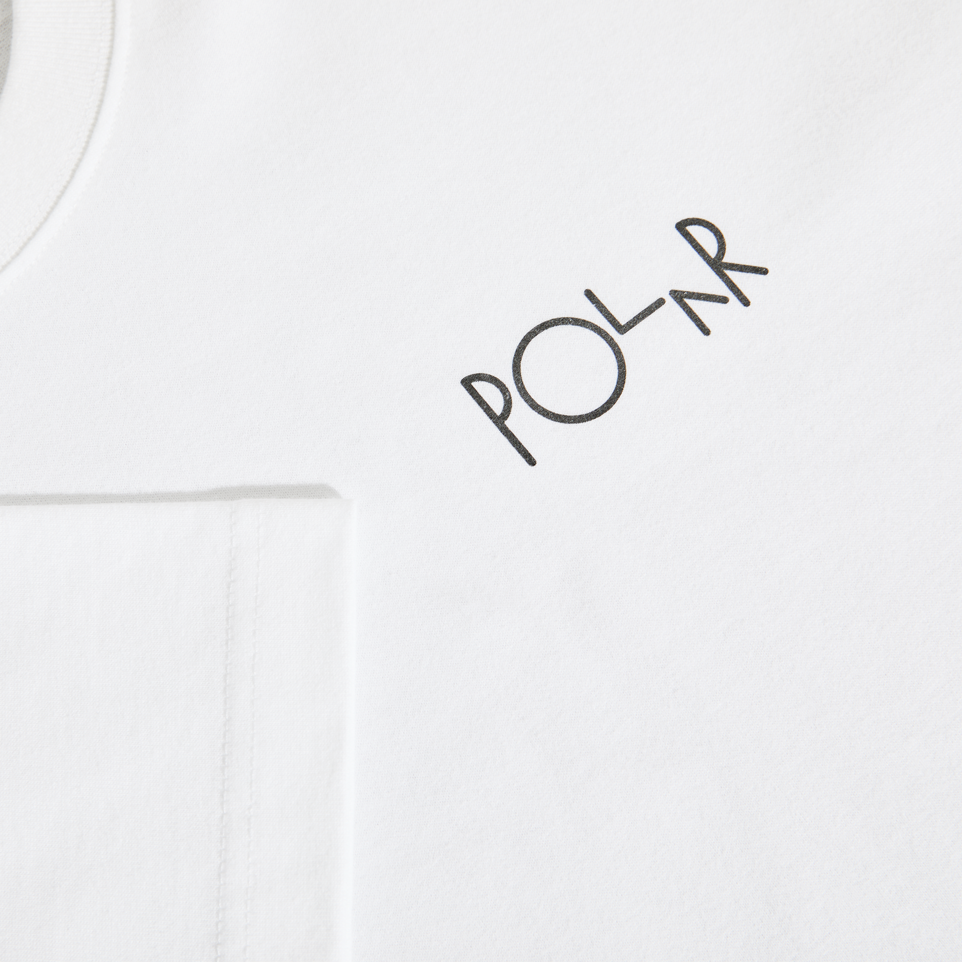 Lleva el discreto logo de Polar en el pecho, pero la magia está en la espalda: un gráfico abstracto, estilo boceto a mano y firmado por el artista Jacob Ovgren, que le da un toque artístico y underground. Es una camiseta blanca, de corte skater clásico, perfecta para mezclar lo minimalista con lo vanguardista.